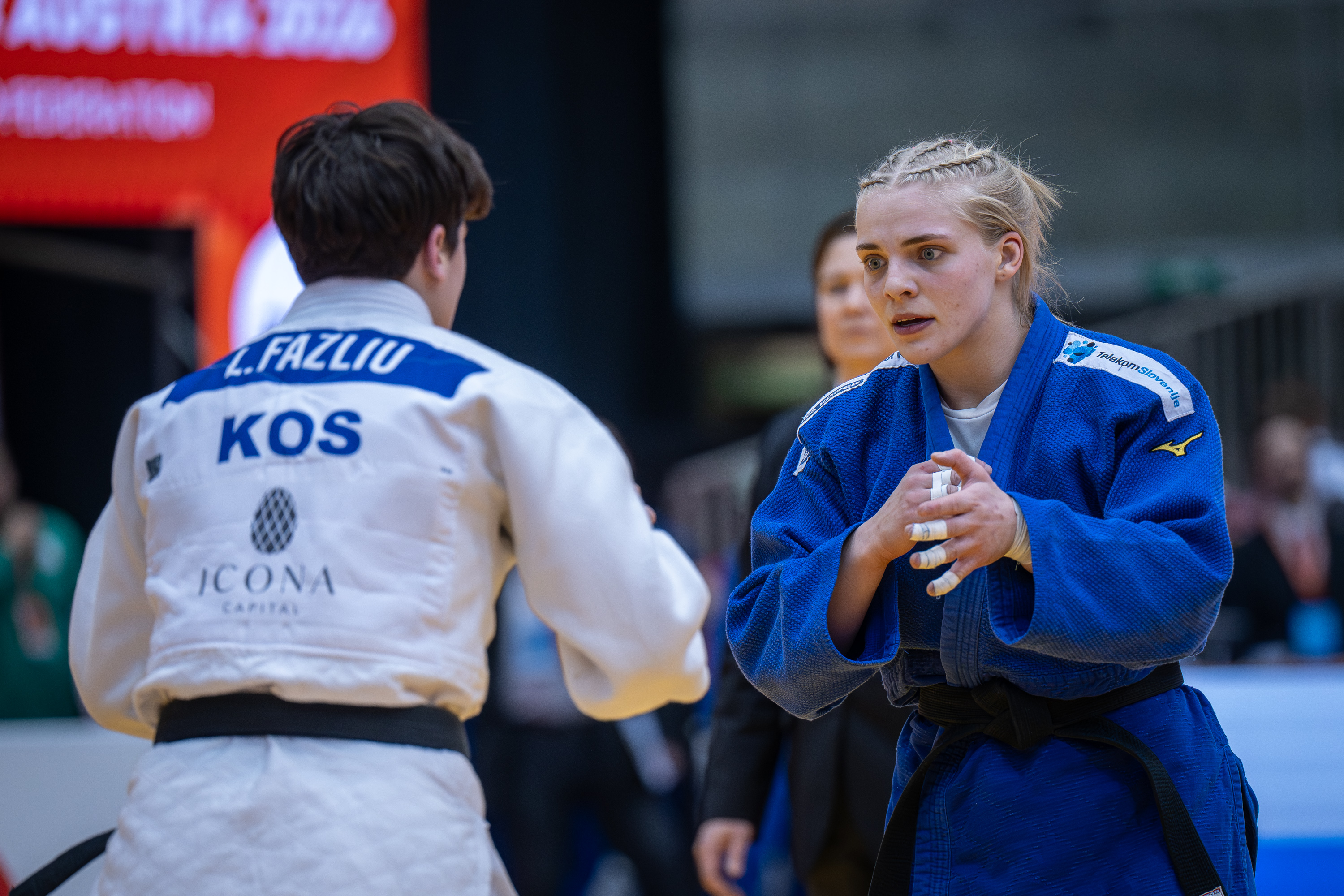 V kategoriji do 63 kilogramov sta slovenske barve zastopali Leila Mazouzi in Kaja Kajzer. Mazouzi je v prvem krogu premagala Nizozemko Joni Geilen, bronasto s turnirja Ljubljana European Open pred tremi tedni. Devetnajstletna Slovenka je do zmage prišla po polovici borbe z uspešno izvedenim vzvodom.