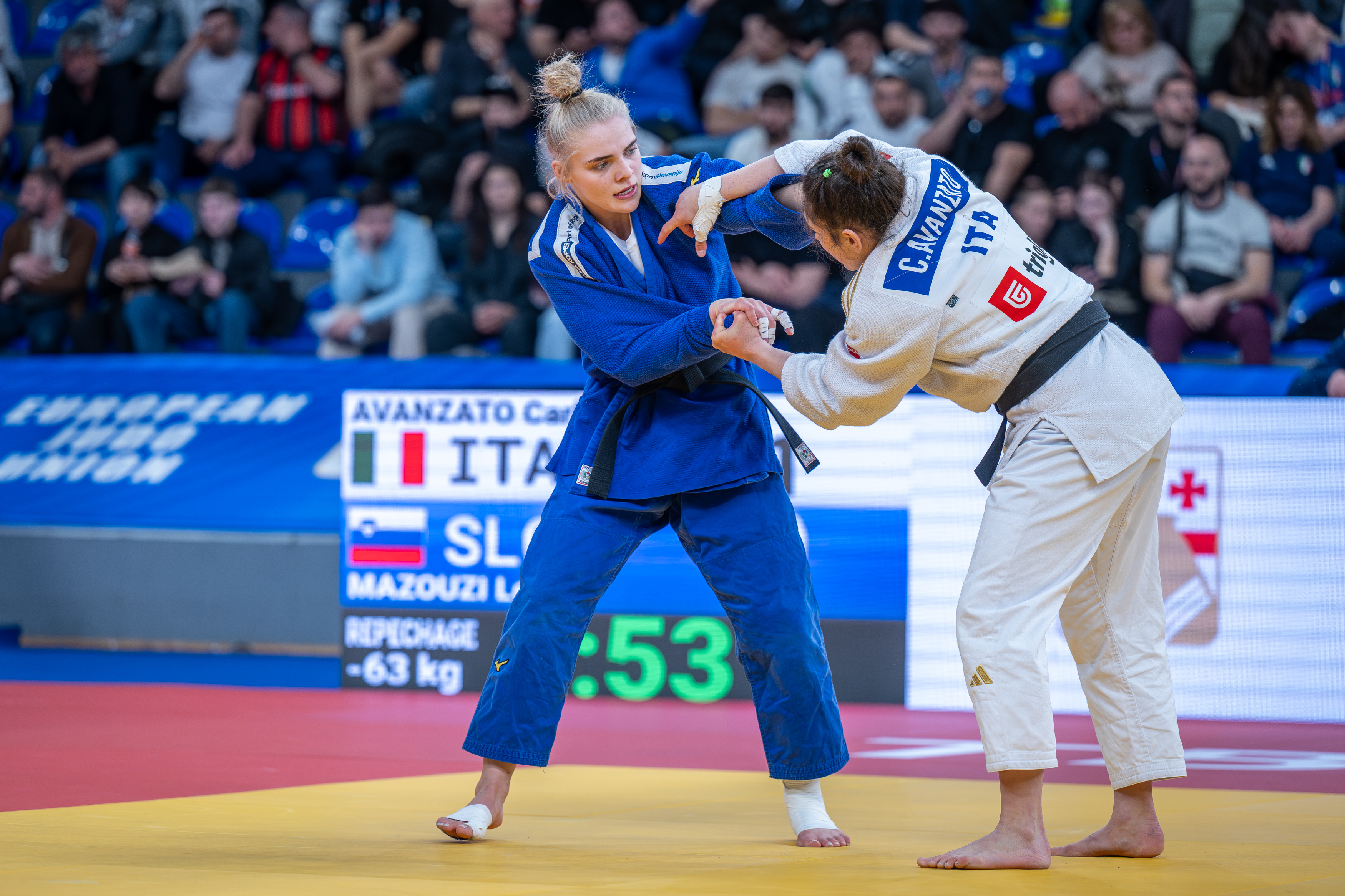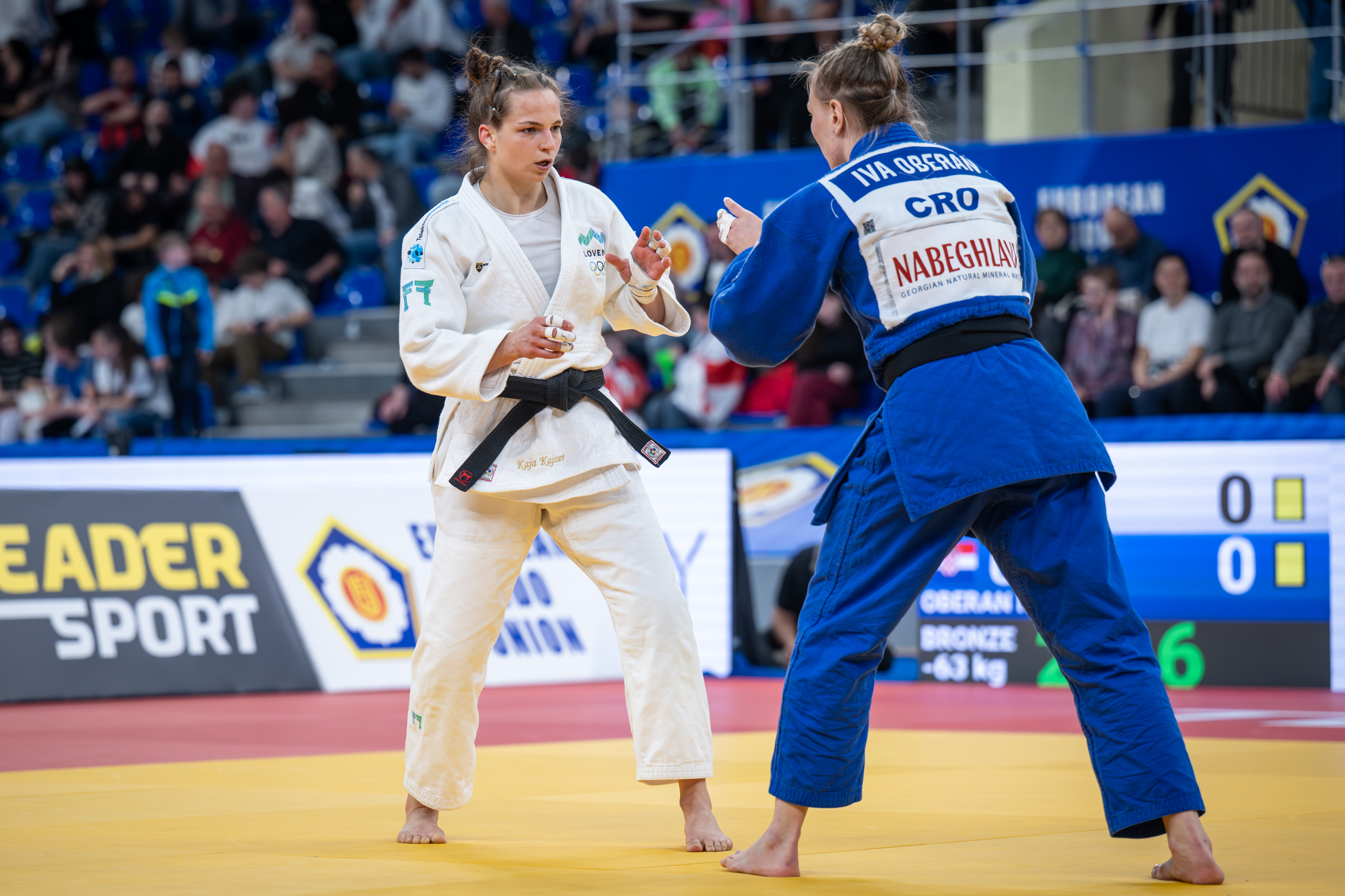 Drugi tekmovalni dan evropskega prvenstva v judu v Tbilisiju je Sloveniji prinesel boj za medaljo, saj se je Kaja Kajzer, dvakratna evropska podprvakinja v kategoriji do 57 kilogramov, borila za bron v kategoriji do 63 kilogramov, Leila Mazouzi pa je ob debitantskem nastopu na članskem evropskem prvenstvu v isti kategoriji osvojila sedmo mesto in potrdila svoj potencial.